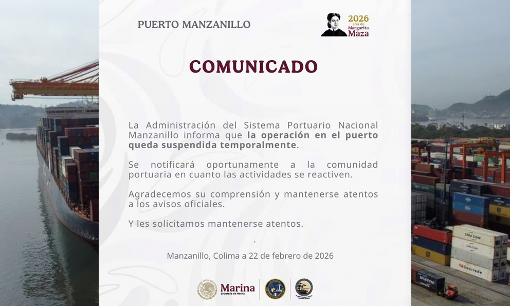 Suspenden actividades en el Puerto de Manzanillo hasta nuevo aviso