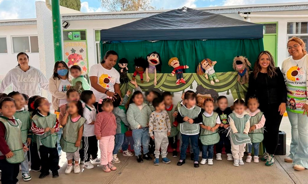 La presidenta del DIF Municipal, Laura Angélica Villanueva Hernández, destacó que a través del teatro guiñol del Instituto Temazcalli, las y los pequeños aprendieron a identificar, comprender y expresar sus emociones de manera sana y positiva y fortalecer su desarrollo emocional y social.