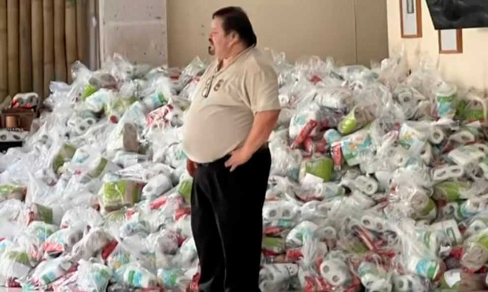 El legislador local mostró imágenes de trabajadores descargando despensas de un camión y llevándolas en una carretilla a algún lugar, así como cientos de ellas apiladas en un rincón.