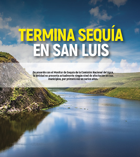 En los reportes quincenales correspondientes a los meses de julio, agosto, septiembre, y el primer reporte quincenal de octubre, la entidad potosina registro el 100% de los municipios libres de sequía, esto gracias a las últimas lluvias que se registraron en San Luis Potosí, lo que ha ayudado a que el nivel de las presas sea óptimo, e incluso con suficiencia de agua hasta 2026.
