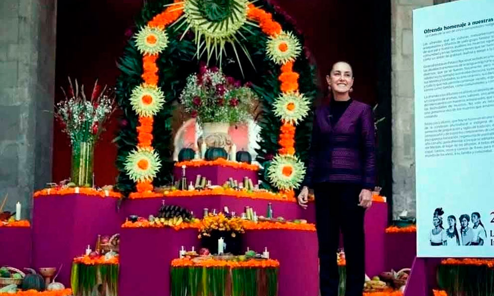 La Presidenta Claudia Sheinbaum presentó la ofrenda de Día de Muertos instalada en Palacio Nacional y anunció que este año está dedicada a las mujeres indígenas de México, a quienes llamó "ancestras" y a las que reconoció su legado histórico y espiritual.