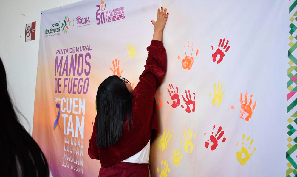 Además, se creó el mural colectivo Manos de fuego que cuentan historias, donde mujeres y familias expresaron mensajes de resiliencia y fuerza comunitaria.