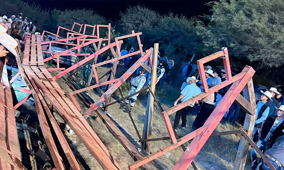 San Luis Potosí, SLP.- La Coordinación Estatal de Protección Civil (CEPC) informó que, tras el colapso de una estructura de gradas en un evento de jaripeo en la localidad de Atotonilco, municipio de Ciudad Fernández, no se registraron pérdidas humanas.