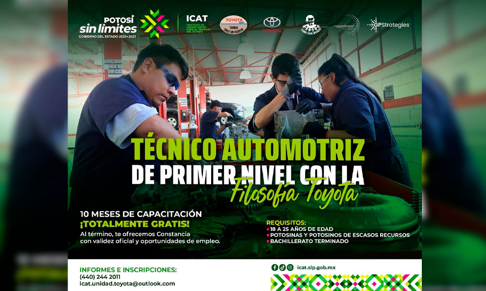 San Luis Potosí, SLP.- El Instituto de Capacitación para el Trabajo (Icat) puso en marcha en San Luis Potosí el Programa T-TEP (Toyota Technical Education Program), en coordinación con Casa Don Bosco y aliados del sector automotriz, con el objetivo de formar técnicos especializados y fortalecer la vinculación entre educación y empleo.