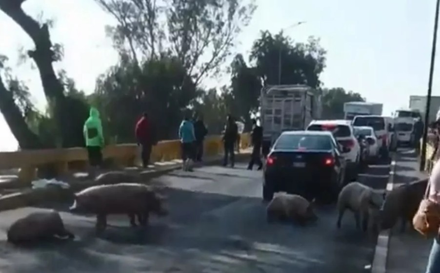 Al menos siete cerdos cayeron de una camioneta donde eran transportados en el Barrio Tepanquiahuac, en el Municipio de Teoloyucan.