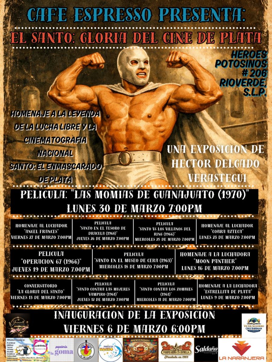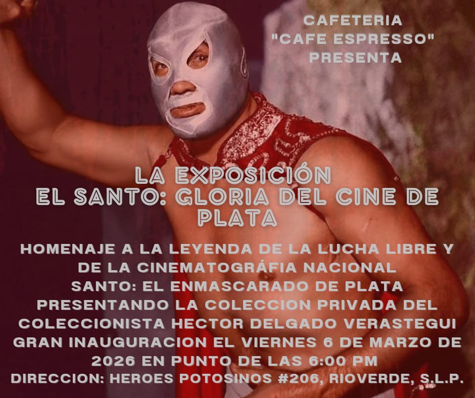 Rioverde, SLP.- La mística de la lucha libre y la época de oro del cine de culto se reúnen en la capital potosina. A partir del 6 y hasta el 31 de marzo, los seguidores de la leyenda mexicana podrán sumergirse en la vida y obra de Rodolfo Guzmán Huerta a través de la exposición interactiva “El Santo: Gloria del Cine de Plata”.