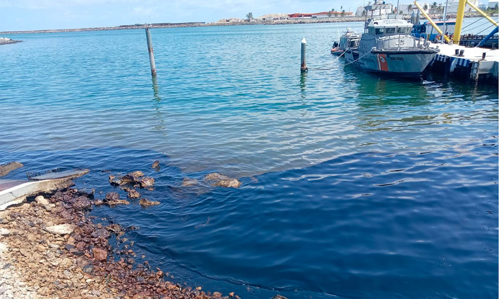 Aseguró que como parte de las labores, concentradas en la dársena (zona de carga y descarga de embarcaciones) y canales de navegación, se han instalado más de 50 barreras marinas y más de mil cordones oleofílicos para contener el producto.
