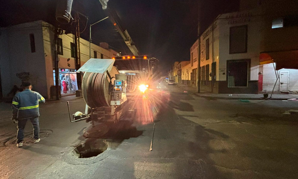 San Luis Potosí, SLP.- Como parte de los trabajos de limpieza de Semana Santa en el Centro Histórico, se llevó a cabo un operativo de saneamiento en el perímetro del Mercado Hidalgo, con el objetivo de mejorar las condiciones sanitarias y prevenir problemas en la red de drenaje.