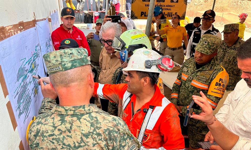 Brigadas especializadas de la Secretaría de la Defensa Nacional y especialistas de la empresa Industrial Minera Sinaloa avanzaron durante la última noche 264 metros en la exploración de las rampas.