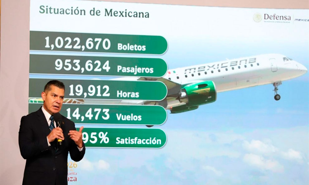 "En este 2026, a partir del mes de mayo Mexicana estará recibiendo su primera aeronave de las siete que están consideradas y programadas para este año, para estar terminando en el mes de diciembre con 12 aeronaves", explicó.