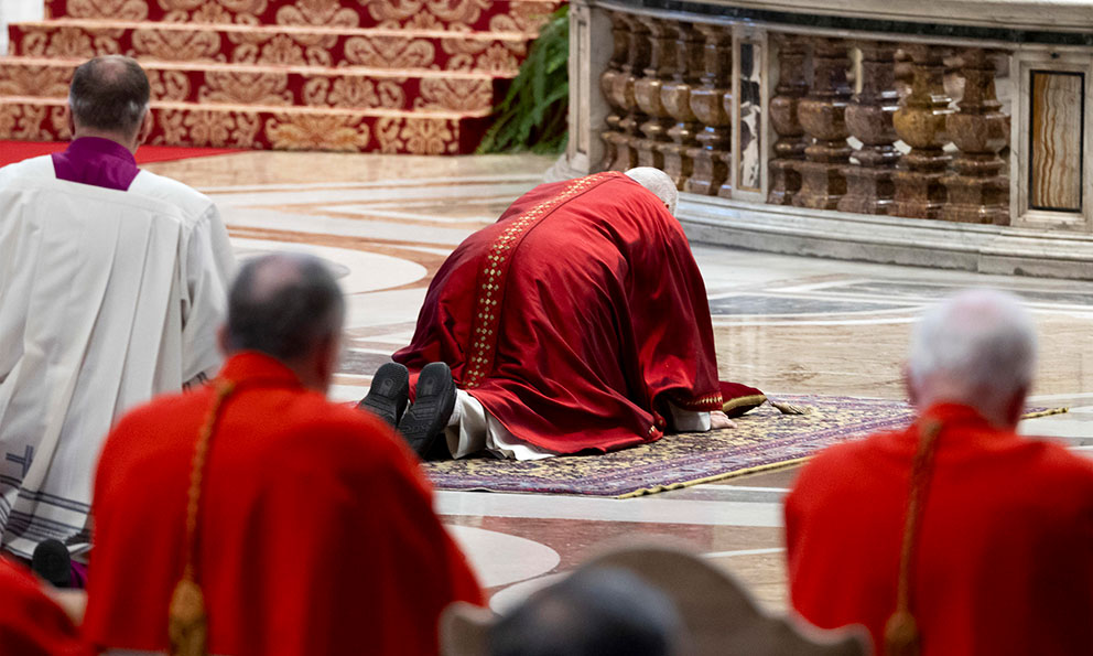 León XIV reza tendido en el suelo de la basílica vaticana por la Pasión de Cristo