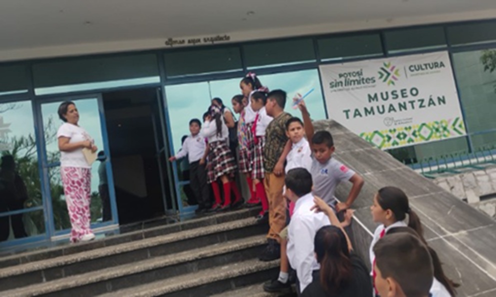 San Luis Potosí, SLP.- Esta semana se llevó a cabo una visita guiada en el Museo Tamuantzán del Centro Cultural de la Huasteca Potosina, donde se recibió a alumnas, alumnos, docentes y madres y padres de familia de las escuelas primarias 22 de Septiembre, Plan de San Luis y Gral. Carlos Osuna, provenientes de los municipios de Tamasopo, El Naranjo y la localidad de Nuevo Crucitas.