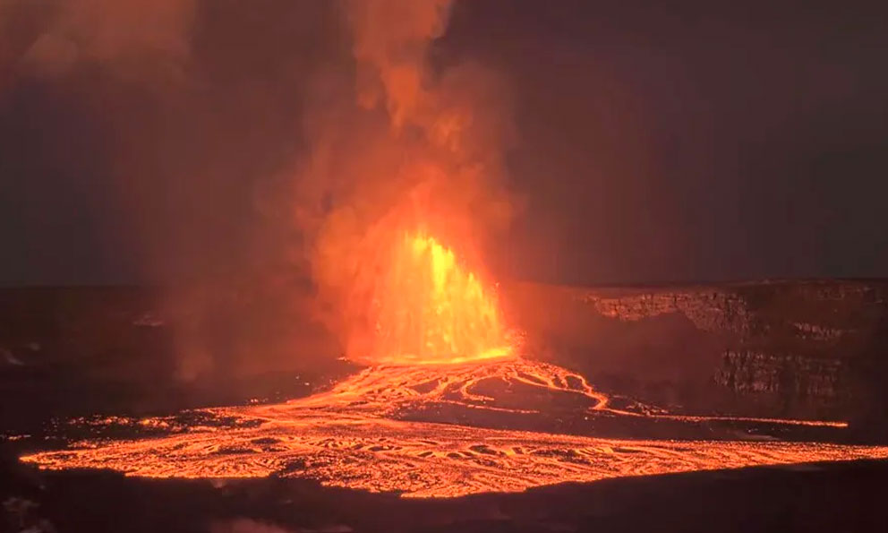 La columna volcánica, una mezcla caliente de gases, cenizas y fragmentos de roca eyectada verticalmente, alcanzó unos 6.000 metros de altura y las fuentes de lava ascendieron hasta 300 metros sobre el nivel del suelo, informó el Observatorio de Volcanes de Hawái.