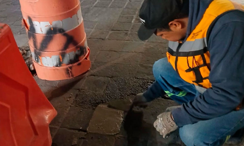 Realizan bacheo y reposición de cantera en calles del centro