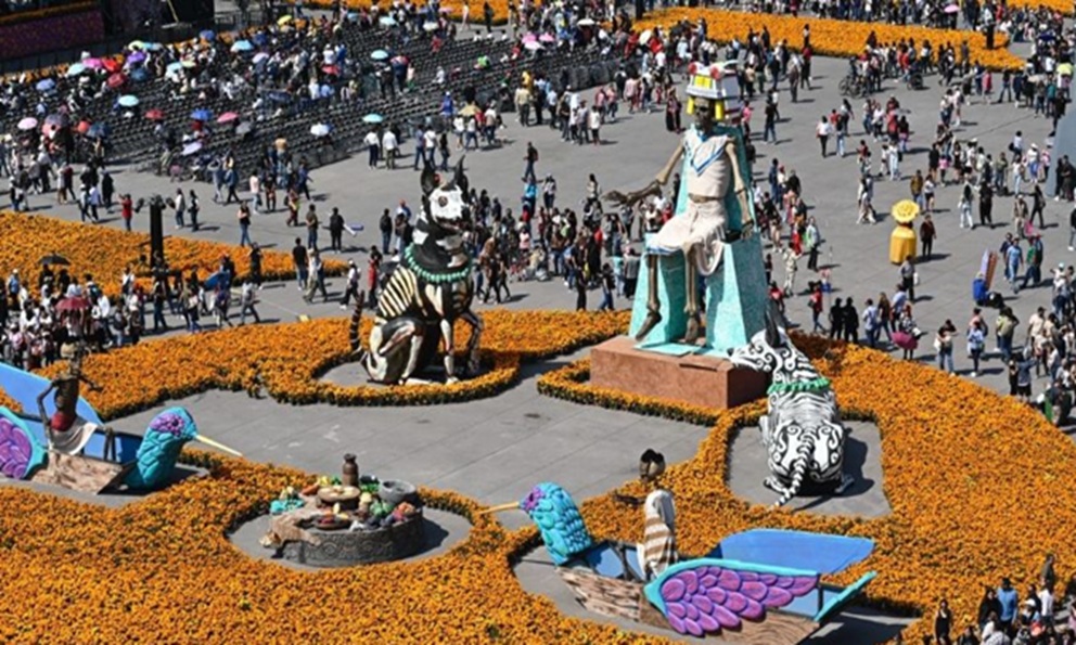 Inauguran ofrenda monumental de Día de Muertos en el Zócalo de la CDMX