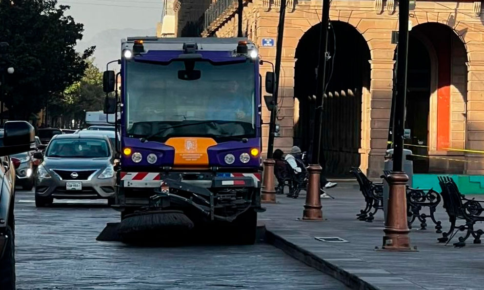 Barredora mecánica realiza limpieza de plazas