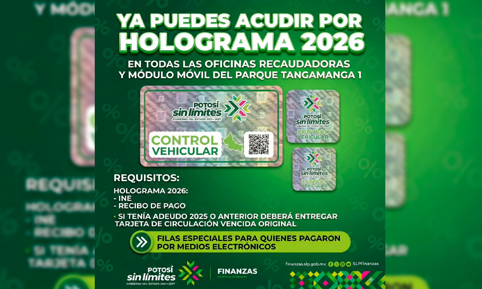 Disponible holograma vehicular 2026 en recaudadoras de finanzas