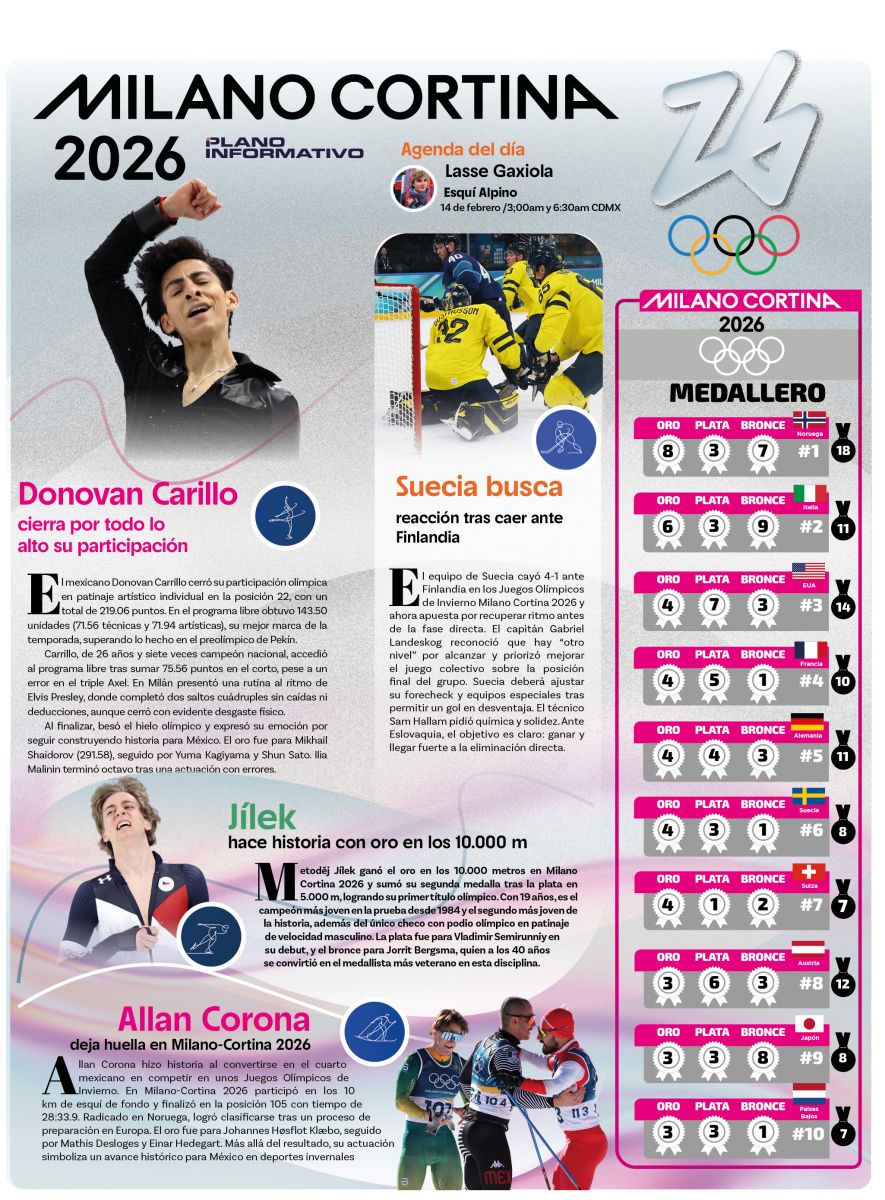 Milano Cortina 2026; agenda 14/02/26
