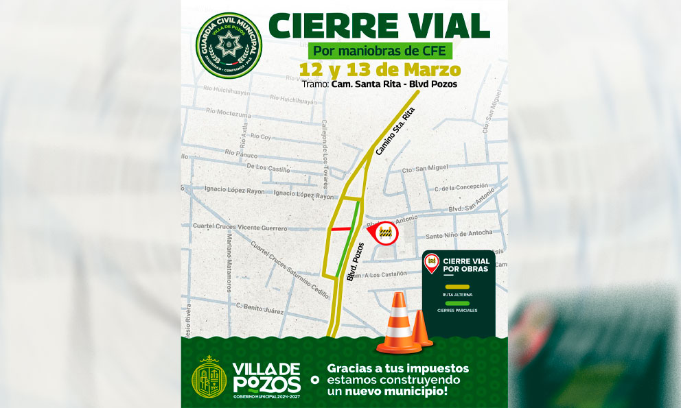 Anuncian cierre vial por maniobras de CFE
