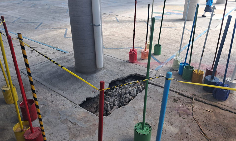Reportan hundimiento en jardín de niños