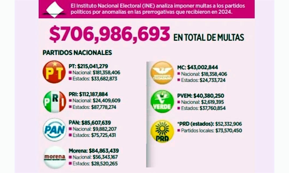 Perfila INE multas por $707 millones