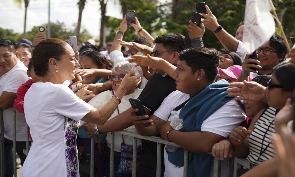 La Mandataria dijo que no ha visto al tabasqueño, pero que a veces le manda recaditos con su esposa Beatriz Gutiérrez Müller