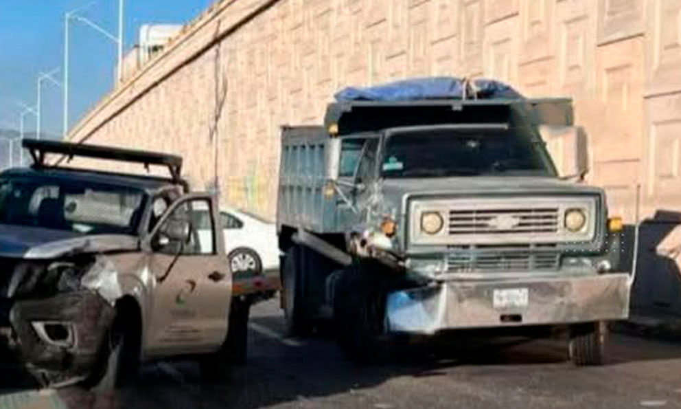 Daños materiales en choque entre camioneta y camión de volteo