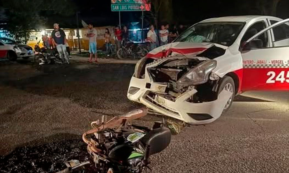 Muere motociclista al impactar con taxi