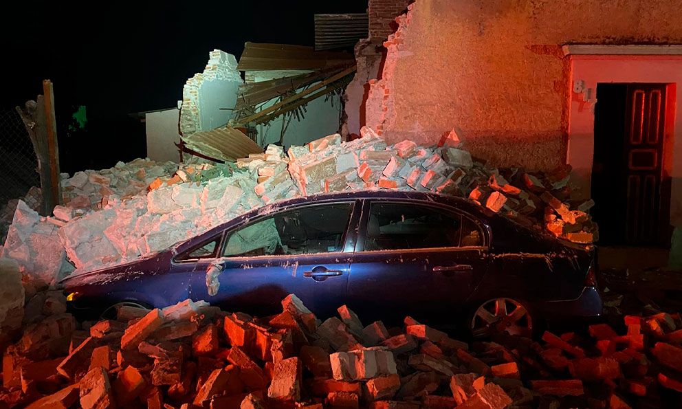 Se desploma barda y cae sobre vehículos