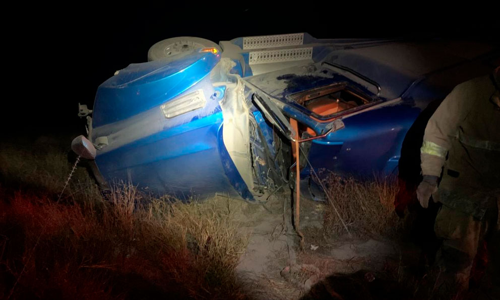 Bomberos rescatan a trailero atrapado tras volcar en la carretera a Rioverde