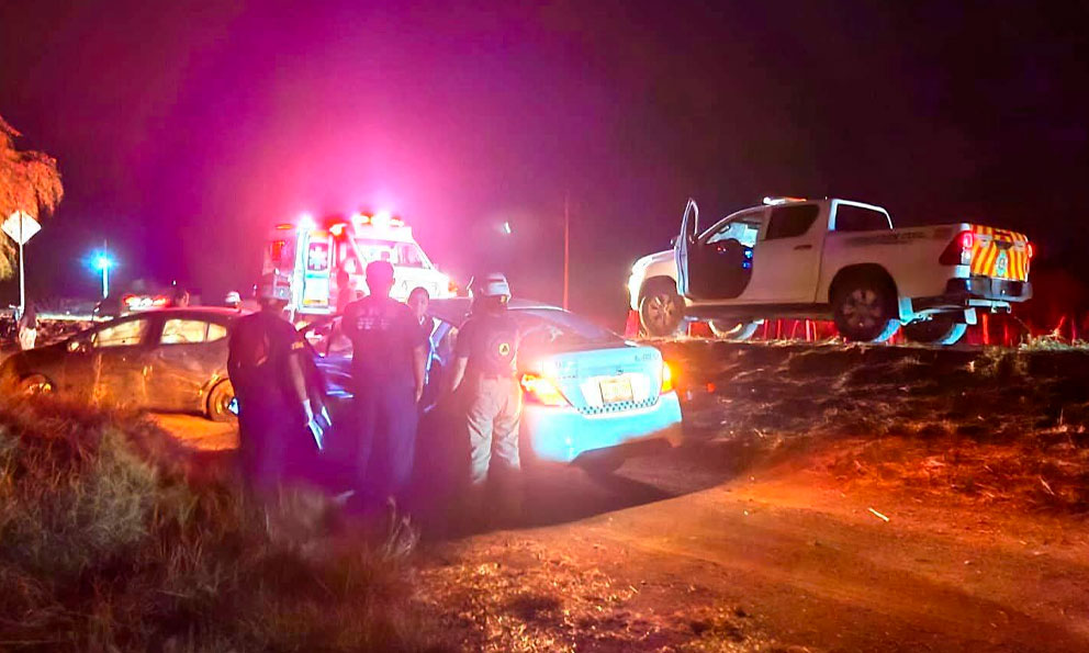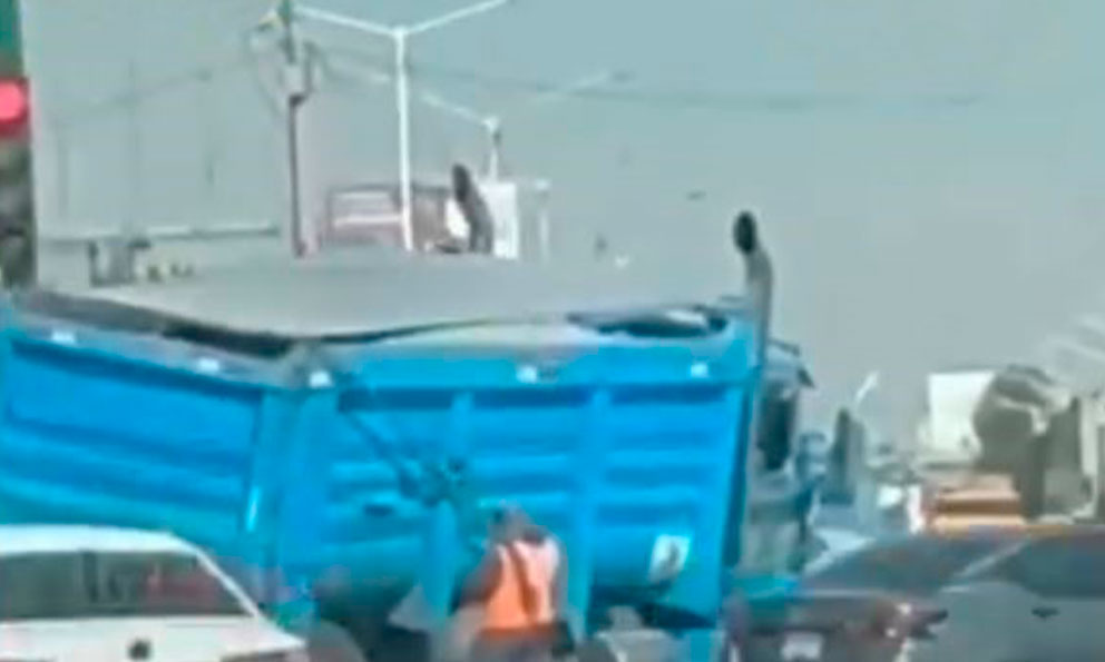El choque provocó que el camión quedara inclinado hacia uno de sus costados, con daños visibles en la carrocería y los ejes